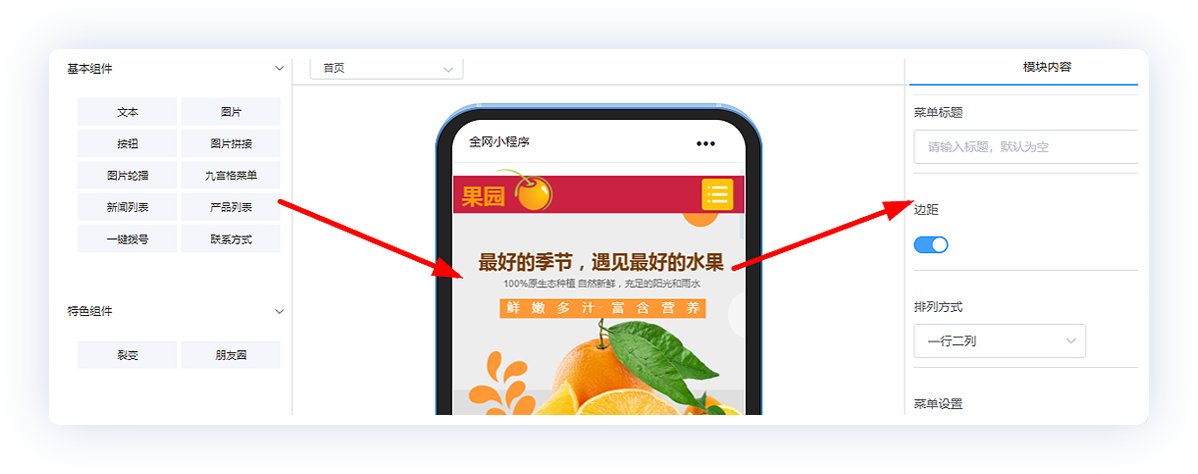 只需要簡單的拖拽操作,即可快速搭建自己的小程序頁面